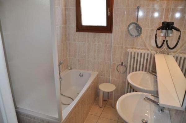 - Bathroom ground floor: 3.80 m² south, one window, 2 sinks, bath, hairdryer, magnifying mirror, toilet, tiled floor